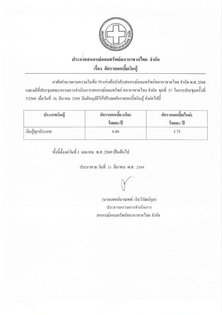 ประกาศสหกรณ์ฯ เรื่อง อัตราดอกเบี้ยเงินเงินกู้ 31/03/2026 by webmaster ประกาศสหกรณ์ฯ เรื่อง อัตราดอกเบี้ยเงินเงินกู้ดาวน์โหลด