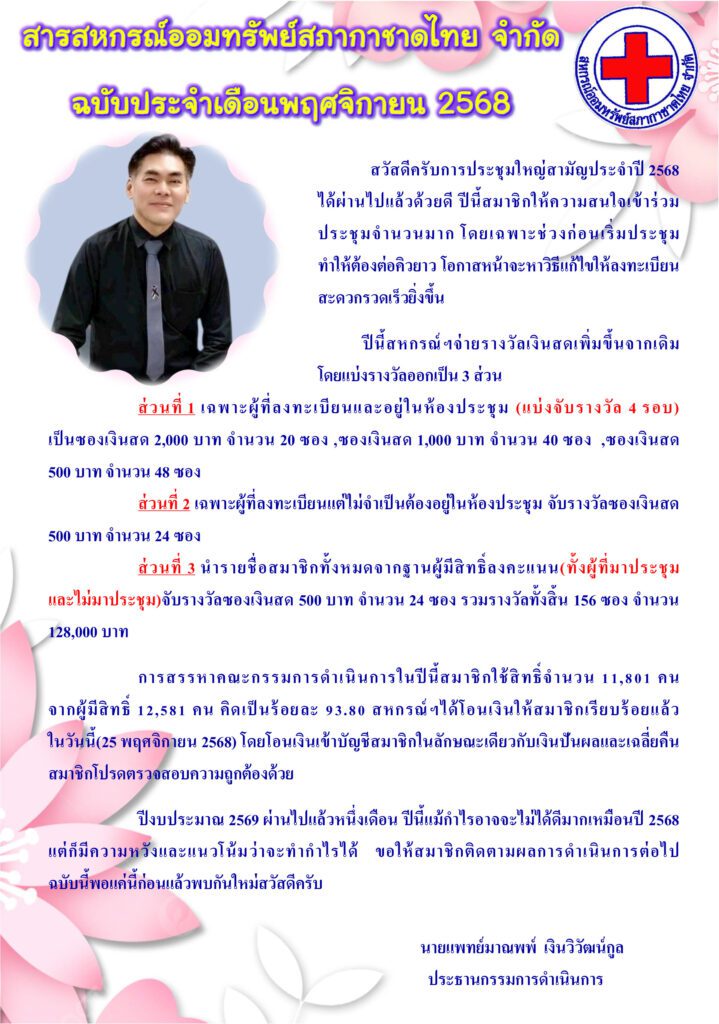 สหกรณ์ฯ ประกาศรายชื่อสมาชิกที่ได้รับรางวัล จากการจับรางวัลในที่ประชุมใหญ่สามัญประจำปี 2568